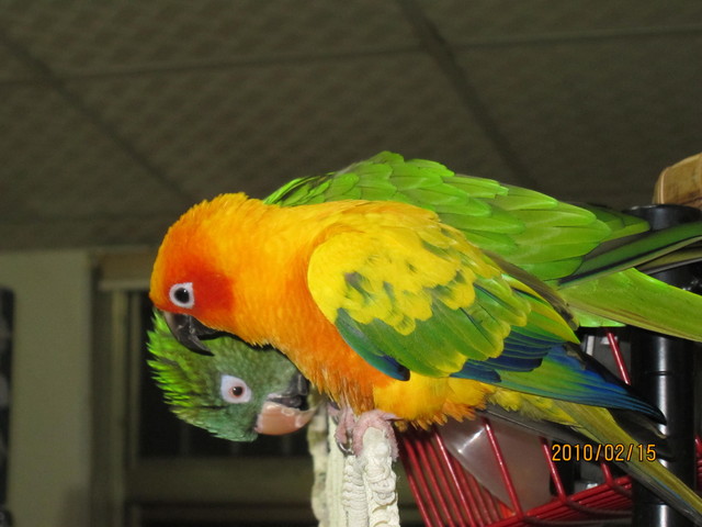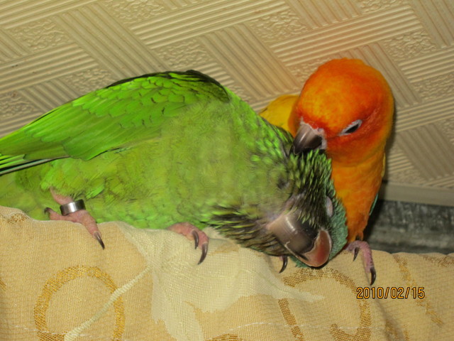- 常常上一秒才被咬 下一秒阿呆便要求妹妹代為整理羽毛 仍不影響妹妹的服從