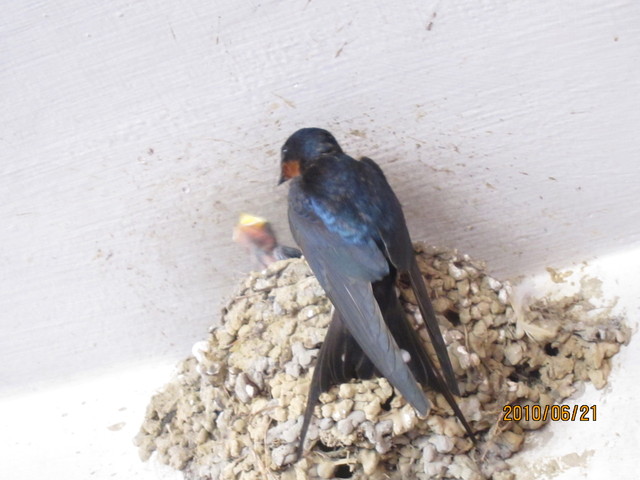 二十多年了肉圓攤的天花板 每年夏天燕子會回來傳宗接代 只是今年回來的有點晚 眼看別人家的小燕子已經長大在學習飛翔 準備離巢 原先以為牠們今年不回來了