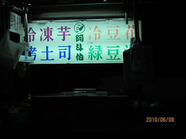 - 忽然看到曾經在電視上有媒體節目介紹的特色小攤 阿斗伯豆花烤土司冷凍芋便下車去品嘗