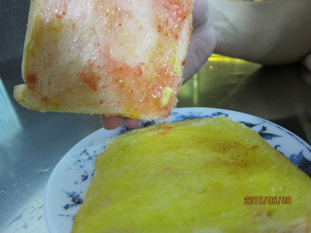 - 後來看了在地人點了烤土司才恍然大悟 原來台中的道地吃法就是一面果醬一面奶油 難怪剛才老闆娘不理我