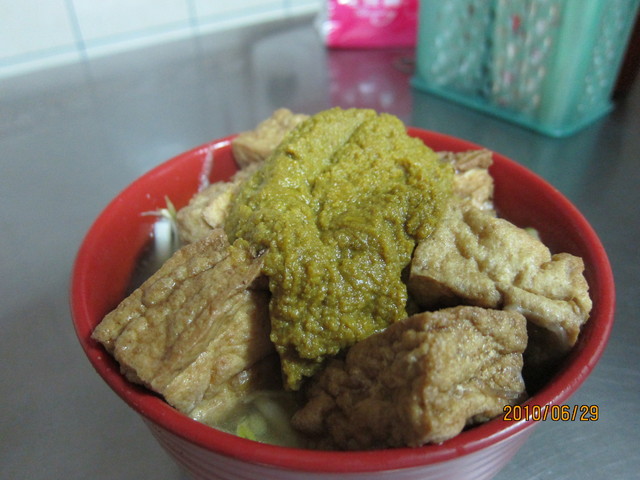 - 店內賣的料理很簡單 只有咖哩麵~油豆腐~豆芽菜~ 在我的腦袋裡壓根沒想到的組合