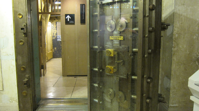 要進入金庫入口會經過一道厚重又機關重重的金庫大門