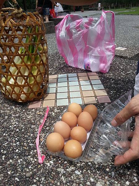 園區內有攤販賣筊白筍,雞蛋,地瓜,等食材讓民眾可以煮食
