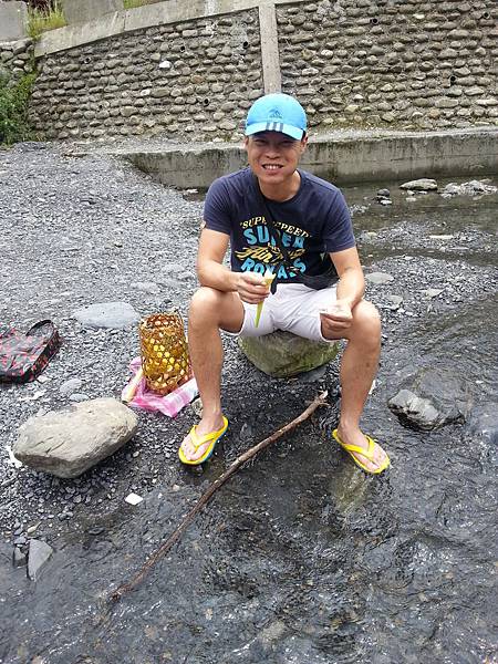 將煮好的食物拿到清水溪旁讓腳泡一泡溪水再享用