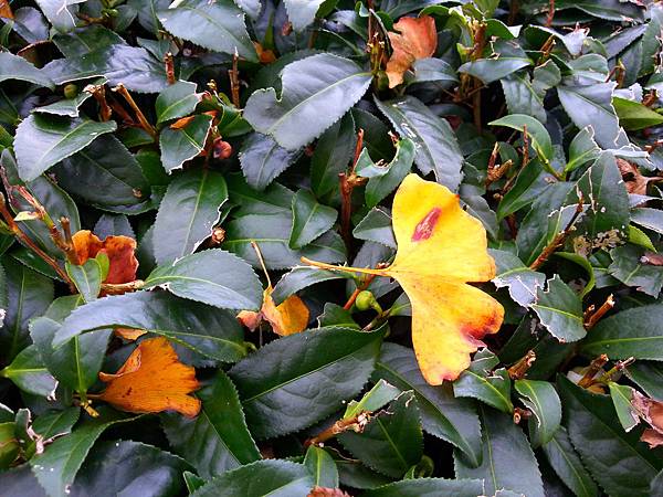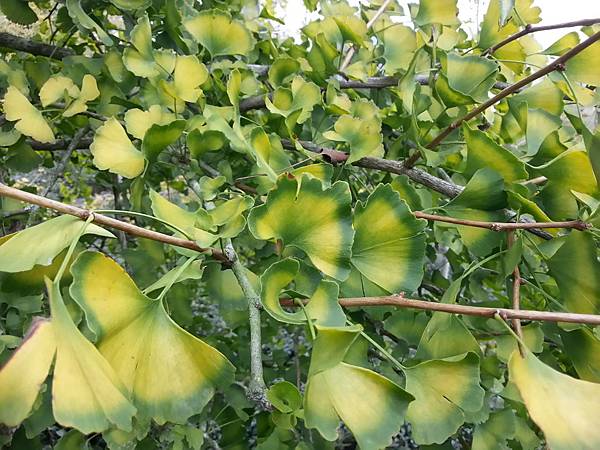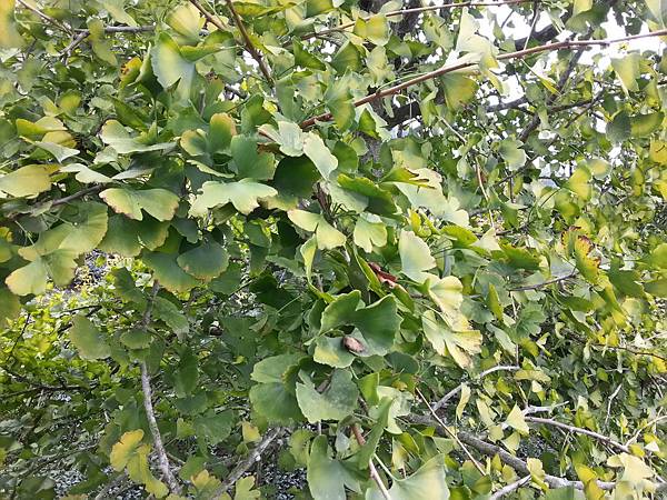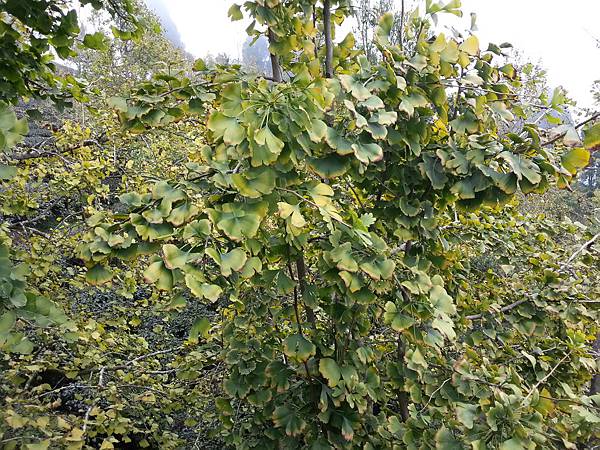 武岫農園的銀杏樹葉子很大片來訪時有些葉子剛好才要變黃