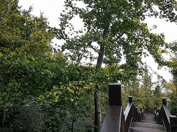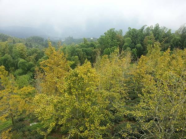 站在木棧道往茶園裡看銀杏葉像不像許多嫩綠色的蝴蝶在枝枒上飛舞