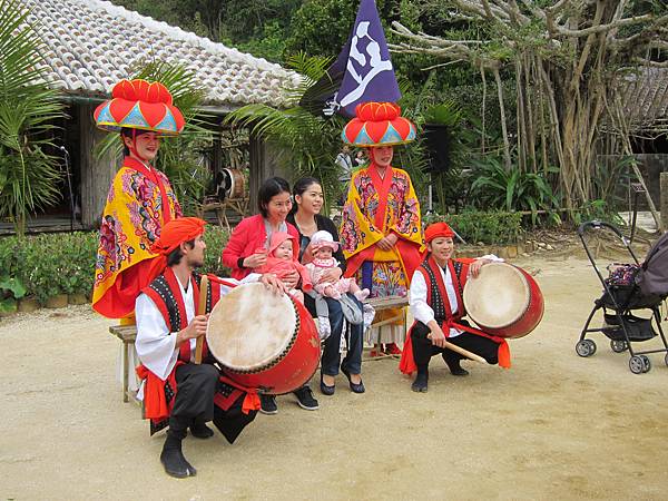 太鼓表演後可以排隊和村裡扮成古琉球王朝人的服務人員拍照留念