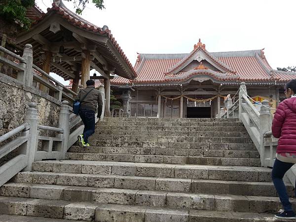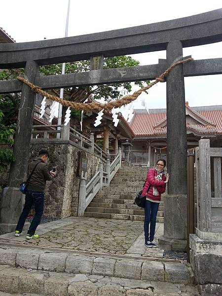 清早時到訪看到許多當地的沖繩人要上班或出外之前到神社跟神明鞠躬後