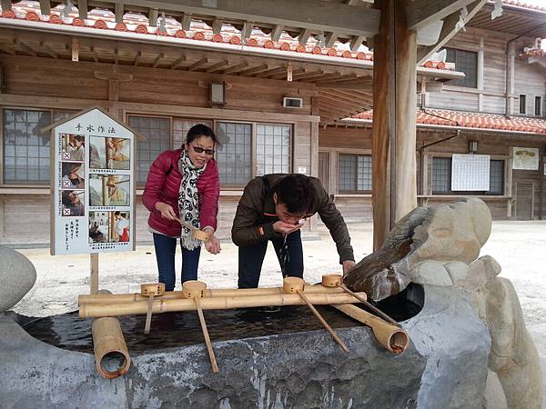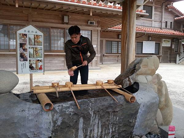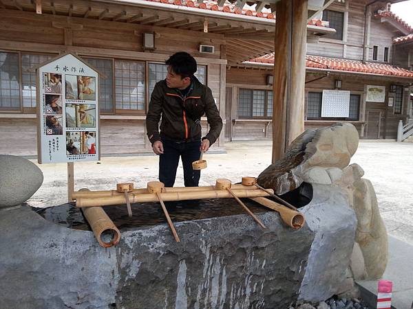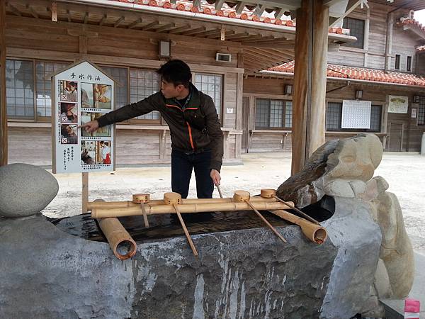 到了手水舍按照手水舍旁的指示洗手漱口後再走向拜殿