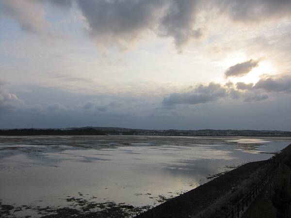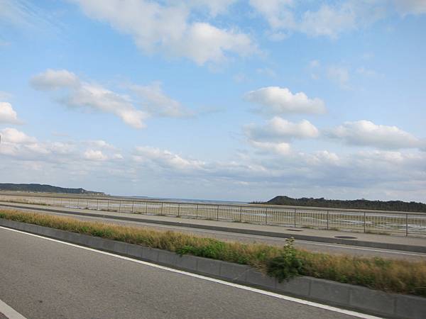 我們站在道路中段的休息區觀看退潮時寬闊的淺灘