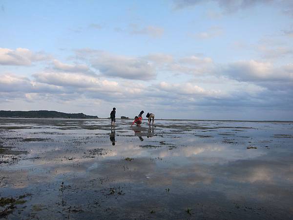 淺灘上殘留的海水映著藍天倒影加上一群開心小孩的畫面朋友呀妳說是不是非常有療癒的效果呀!