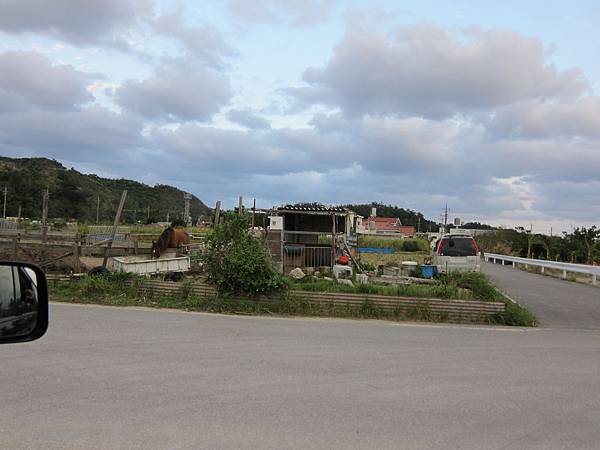淺灘探險後在搭上車距續往伊計島開去在路旁發現低頭吃草的小馬