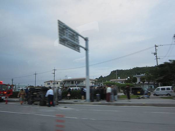 此時正前方發生一輛在蔡的小貨車翻車交通意外不到十分鐘內來了三輛警車一輛救護車三台消防車