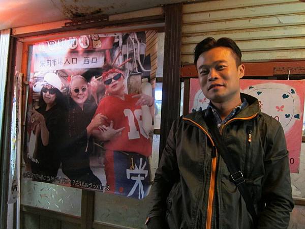 海報上的嘻哈歐巴尚是居酒屋招牌靈魂人物喔也是榮町市場出名道出唱片的紅人喔!!