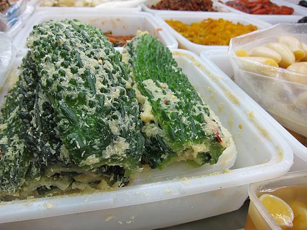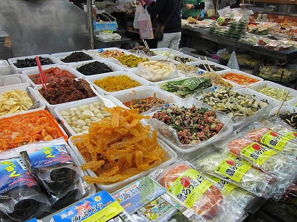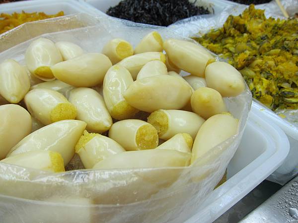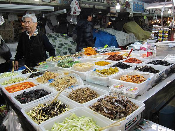 這家漬物攤的老闆超好玩的我一靠近時他就瘋狂的夾各式各樣的漬物讓我試吃