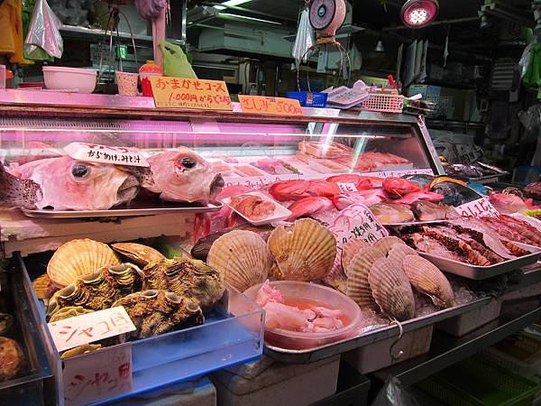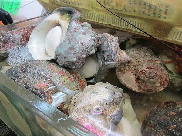 牧志市場一樓的海鮮看滿意還可買了上二樓請店家煮來吃(但要額外付料理費喔!)